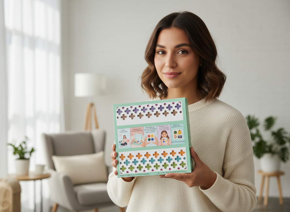 A minimalist, soothing square-shaped craft box made to bring peace, focus, and a gentle sense of achievement.